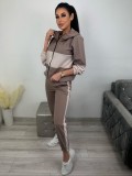 Komplet składający się z bluzy z długim rękawem i spodni. Dwukolorowa rozpinana bluza z kapturem świetnie współgra ze spodniami z lampasem. Spodnie posiadają gumkę w pasie oraz kieszenie, a rękawy i dół bluzy zakończone są gumeczką. Średniej grubości materiał sprawia, że zestaw jest niezwykle wygodny i świetnie się nosi. To rewelacyjny wybór na co dzień, na spacery czy spotkania na mieście.